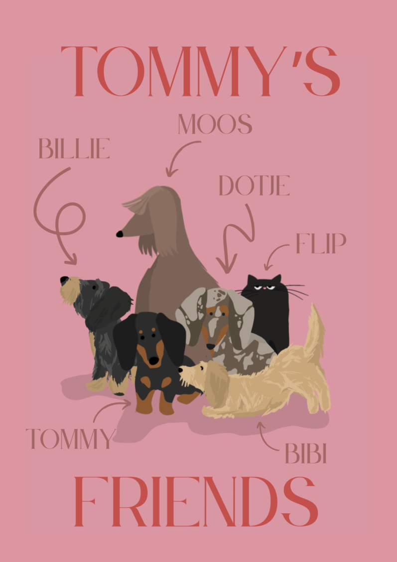 Van eigenwijze teckels tot nieuwsgierige katten en vrolijke viervoeters van allerlei soorten, bij Tommy and Friends vind je allerlei gepersonaliseerde producten voor échte dier liefhebbers. Wenskaarten die je hart doen smelten en brievenbussen opvrolijken, tote bags met jouw eigen leukerd op de handgemaakte tas geborduurd én bagchains in de vrolijkste kleuren die perfect passen aan de gepersonaliseerde tote bags.
